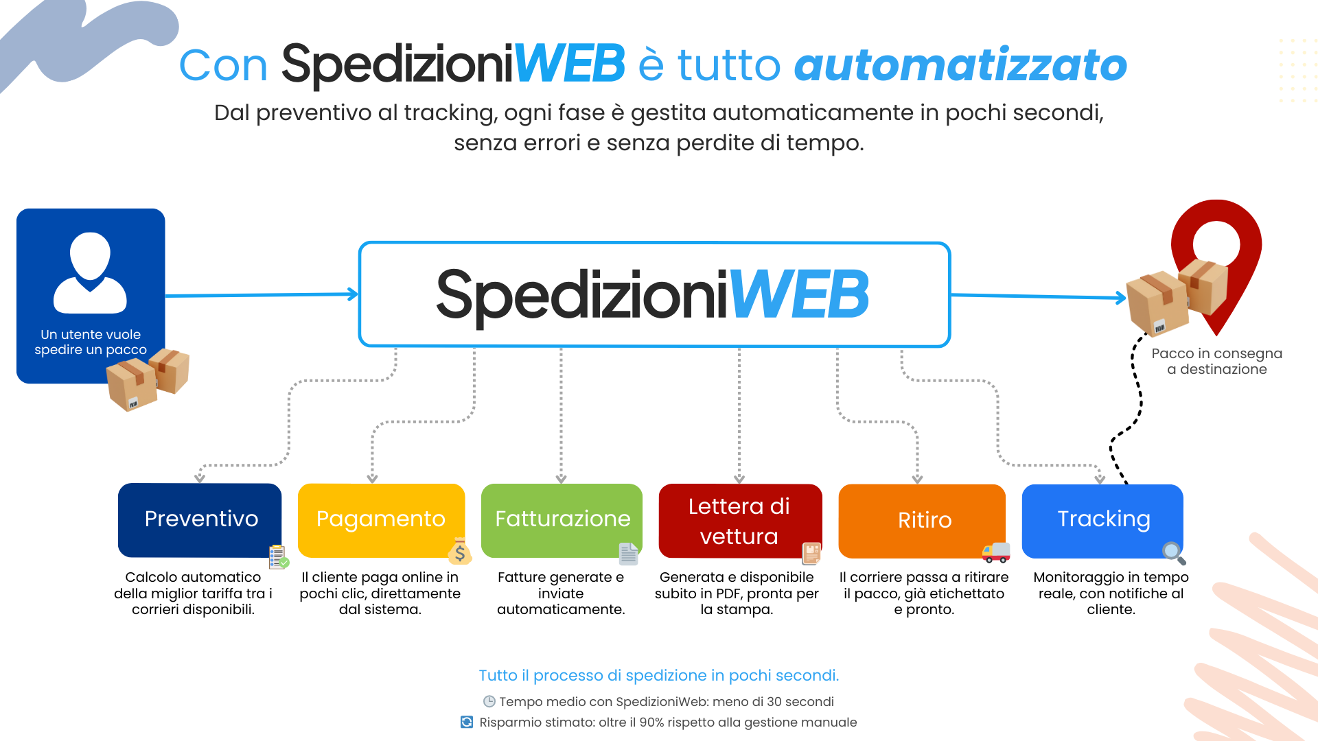 Oggi SpedizioniWeb è utilizzato da broker, e-commerce e realtà della logistica come strumento indispensabile per risparmiare tempo, ridurre i costi e migliorare l’esperienza del cliente finale.