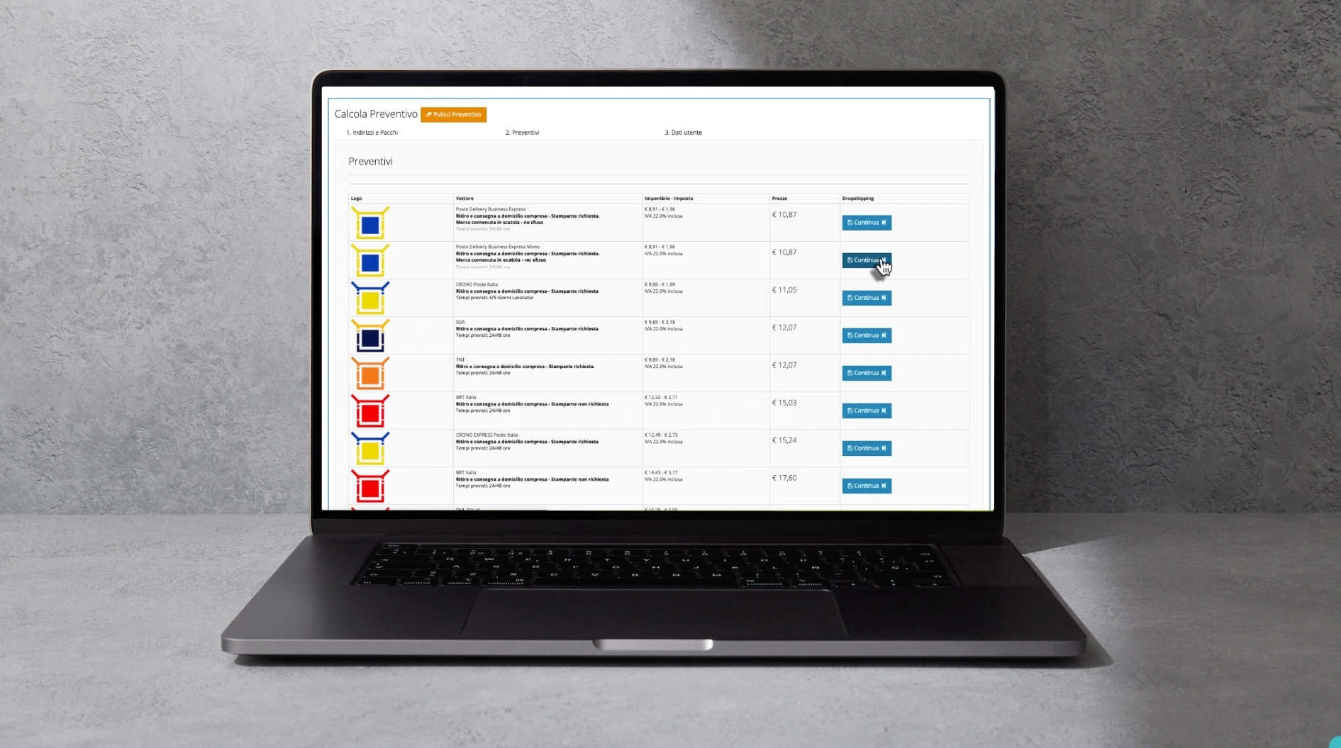 • Collegarti a più corrieri contemporaneamente e gestire le tariffe in un unico ambiente.